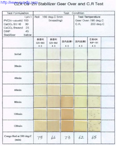 利用正交設計的數學方法,復配出適合于各種制品性能的CZX復合穩定劑系列。