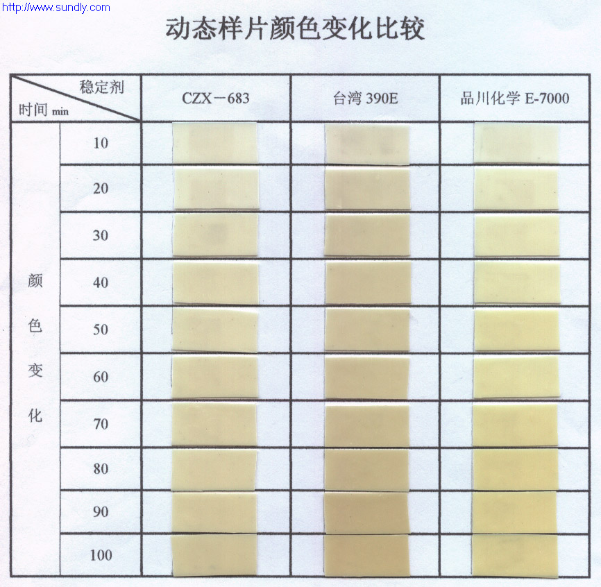 (1)、CZX系列穩定劑是一個全新的無毒穩定劑體系,應用了游離基的中和、吸附等多種理論,針對不同階段的PVC分解問題,從不同的角度對PVC進行全面穩定化,效果比傳統穩定劑更為理想;