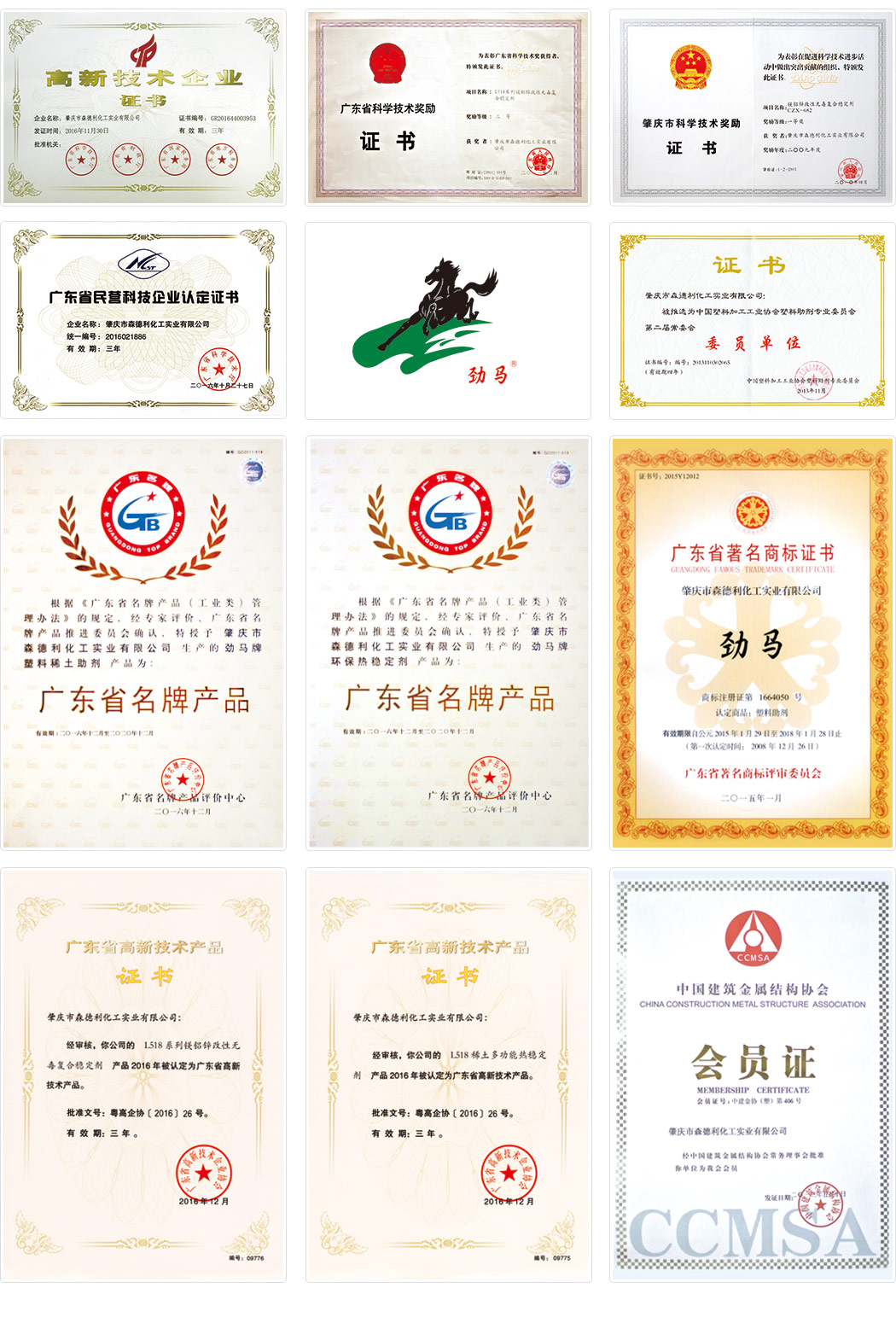 我公司是PVC穩定劑的專業研發生產企業,擁有強大的科研隊伍和齊全的科研設備,在穩定劑領域不斷進取,獲得多項國家發明專利。近年來我公司獲得多項榮譽:高新技術企業、廣東省民營科技企業、廣東省標準化良好行為企業、廣東省著名商標、廣東省名牌產品、廣東省科學技術三等獎、肇慶市科學技術一等獎等。