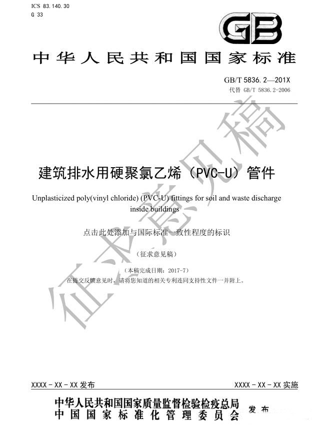 ——GB/T 5836.1—xxxx《建筑排水用硬聚氯乙烯(PVC-U)管材》;